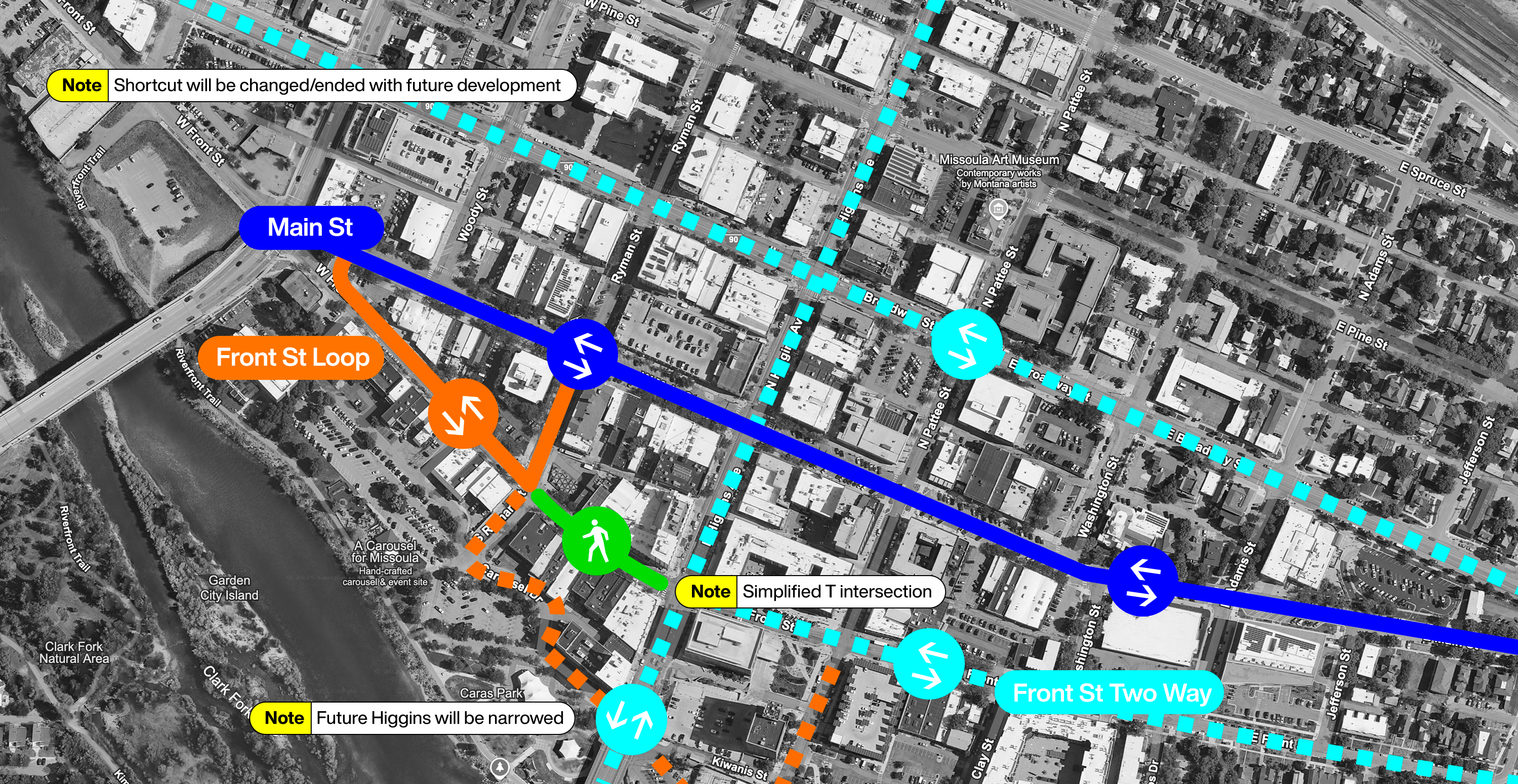 The chaos of streets in downtown Missoula is inching closer and closer to a solve, but have they missed another solution? If we really want people to care, then we must reduce the tangle of street options for their vehicles. It’s about the people.